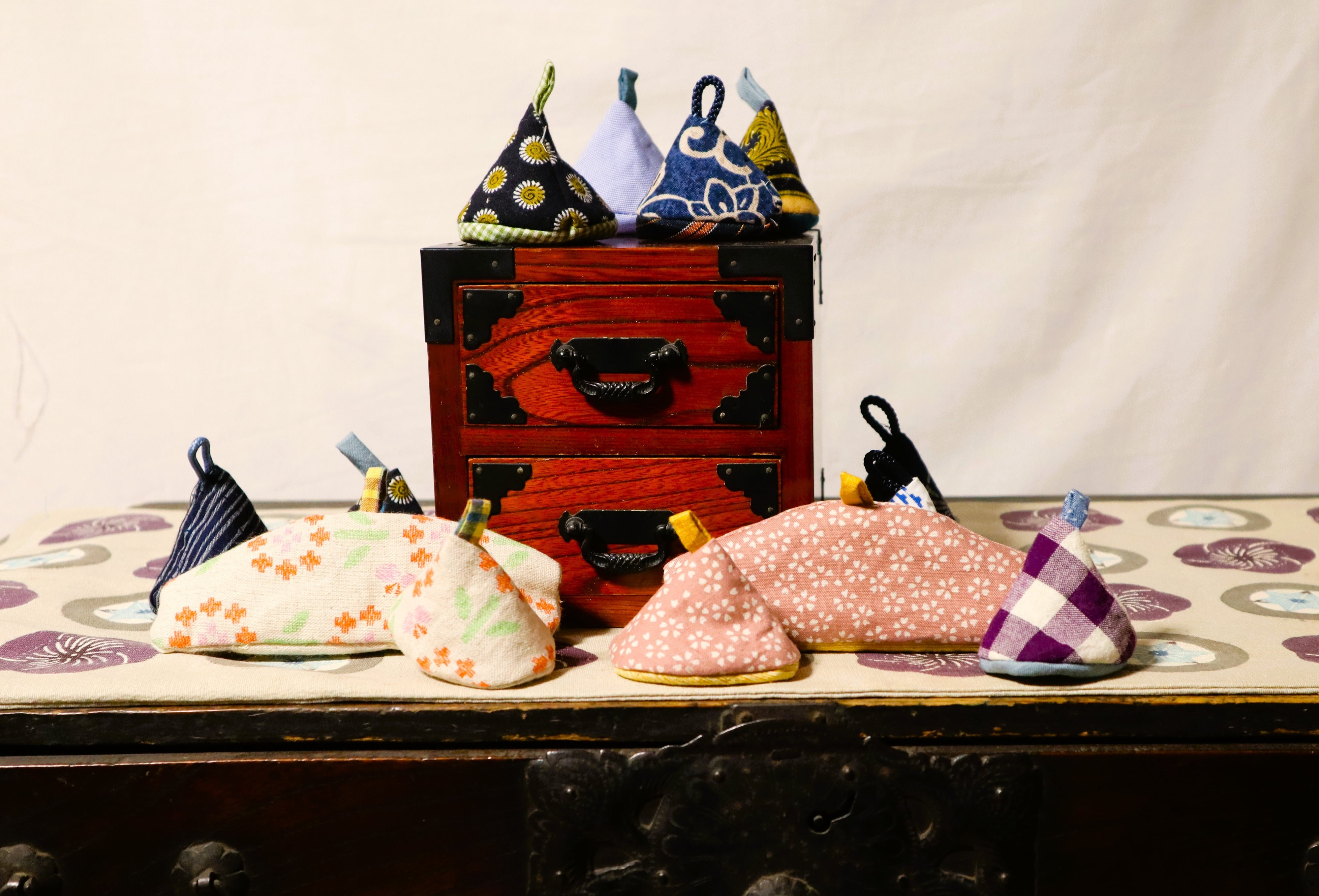 桜模様の鉄瓶に合わせて春の新作の鉄瓶帽子と鉉のカバーを作りました